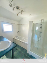 L’étage dispose également d’un WC indépendant et d’une salle de bain raffinée, équipée d’un lavabo, d’une douche et d’une baignoire, pensée pour conjuguer bien-être et praticité.