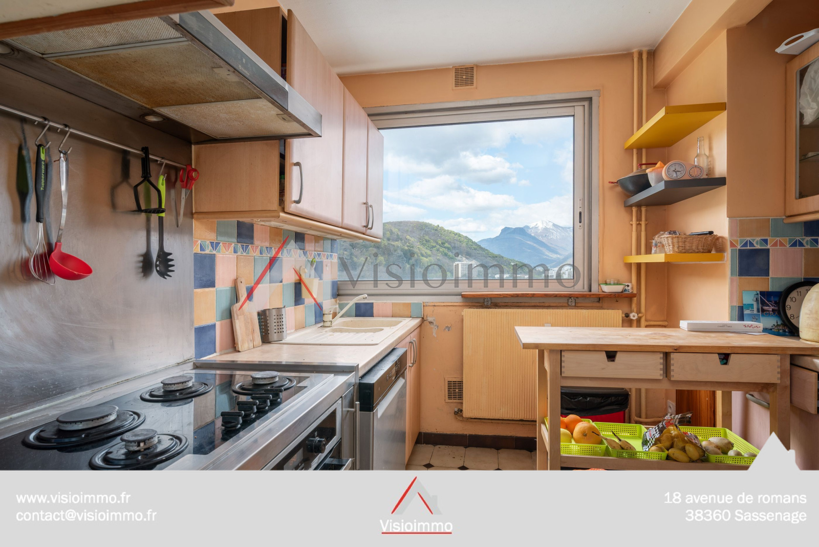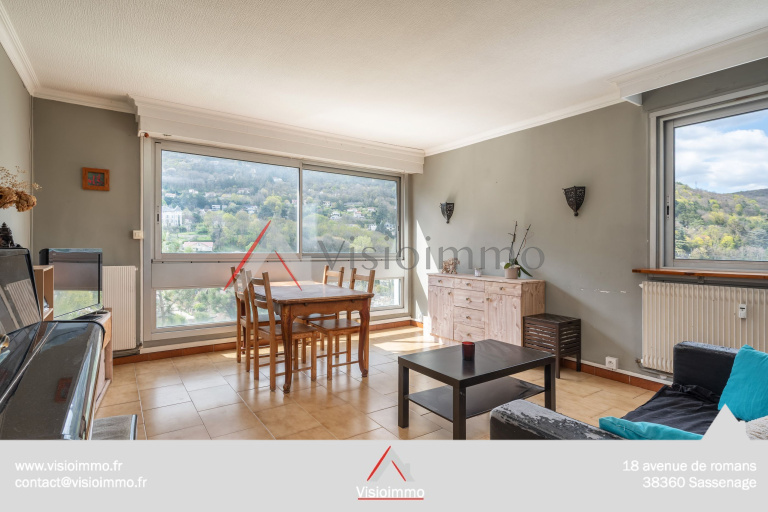 Le séjour spacieux de 20 m² bénéficie d’une belle luminosité et d une vue splendide sur le vercors.. Une cuisine indépendante (hotte, four) est prête à l’usage.