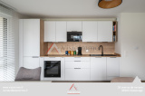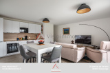Dès l’entrée, dotée d’un placard intégré, l’appartement dévoile une superbe pièce de vie lumineuse de 31,5 m², composée d’une cuisine entièrement équipée (combi réfrigérateur-congélateur, four électrique, four micro-ondes, plaque induction, hotte et lave-vaisselle intégrés) ouverte sur le séjour. Cet espace convivial se prolonge naturellement vers un exceptionnel balcon-terrasse de 21,5 m², sans vis-à-vis, permettant de profiter pleinement d’une vue dégagée sur les montagnes et d’un environnement verdoyant.