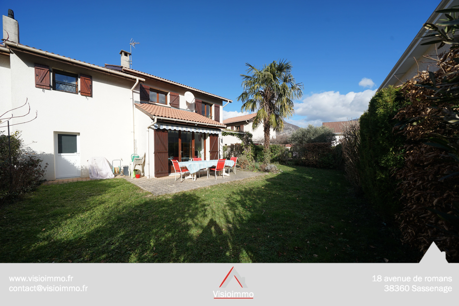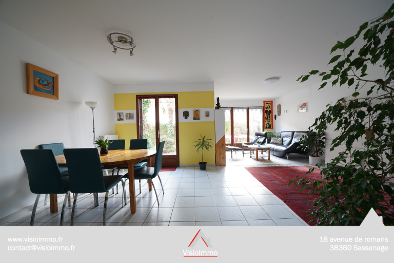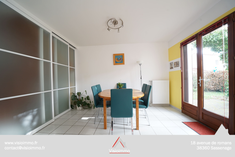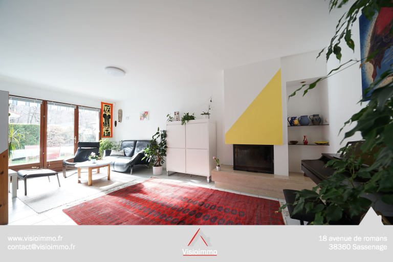 Maison 6P mitoyenne par le garage, d’une surface de 125 m² (156 m² totale au sol), posée sur un terrain clos de 390 m² avec vue sur la Chartreuse et le Vercors.