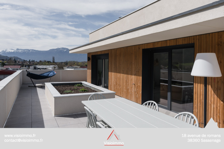 Appartement neuf 5 pièces de 116 m² + terrasse panoramique de 111 m². attique en dernier étage (4/4) avec ascenseur dans une résidence récente offrant une vue dégagée sur nos massifs, sans vis à vis.