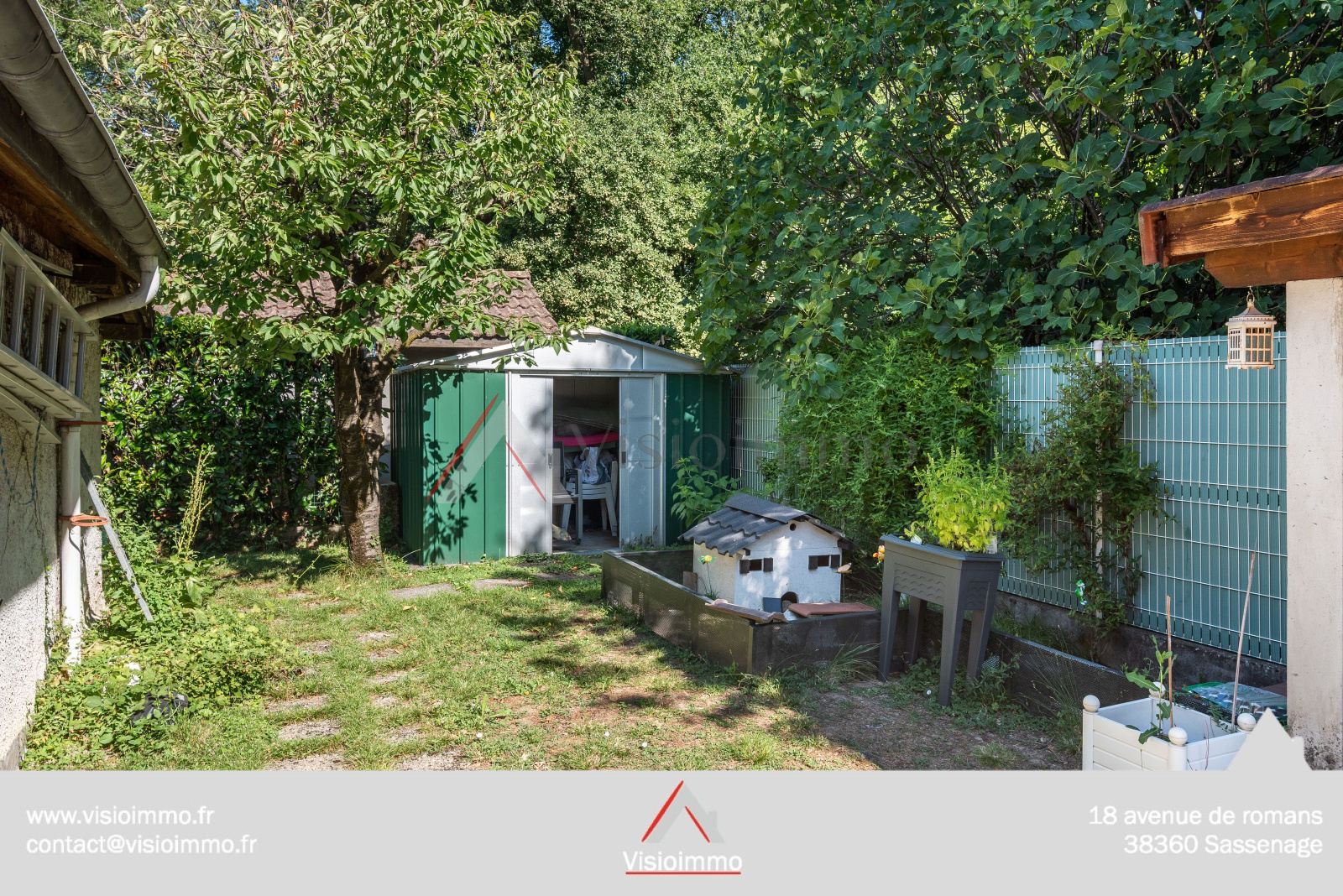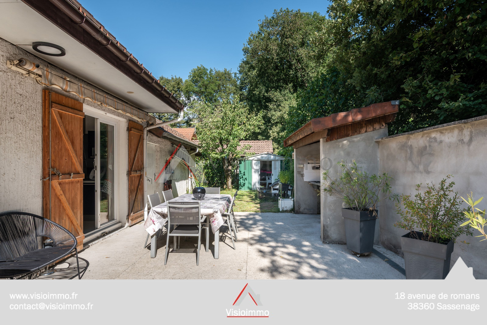 Le jardin de 360 m² est facile à entretenir et propose de belles zones pour se détendre ou recevoir.