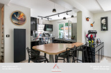 En entrant, vous découvrirez une grande pièce de vie de 36 m², décorée avec modernité, dans un style épuré et actuel. L’espace est ouvert sur la cuisine (16 m²), elle aussi entièrement équipée.